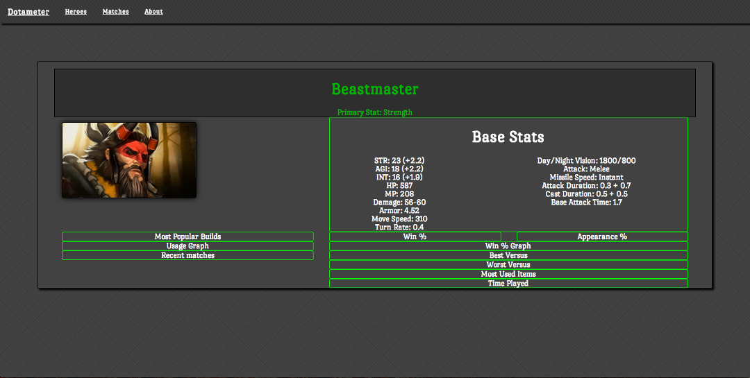-Built from the ground up, we wanted to create a website that players of Dota 2 could go to and get all the statistical data they need for the game. We also wanted to build dynamic graphs using all the statistical data we aggregated.